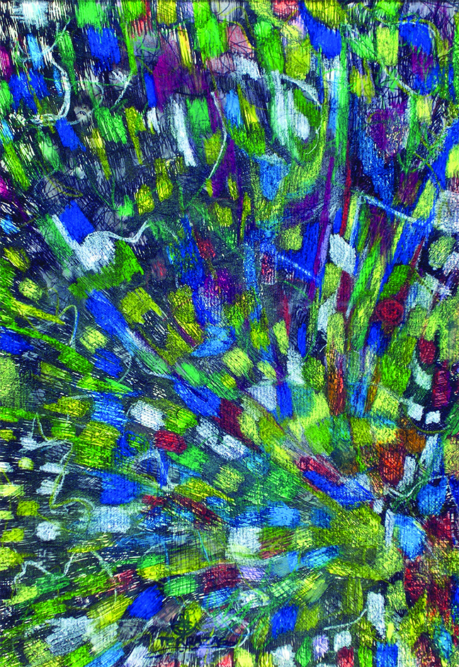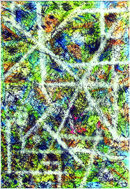 La serie texturas es una muestra de veinticuatro piezas de una riqueza de imágenes enredadas a distintas velocidades, en un empeño que insiste en su propia expresión. Son interpretaciones de organismos naturales de pieles y tramas configurados de manera única.